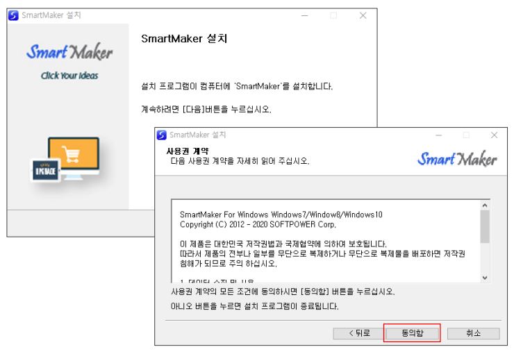 1. 티처몰 상세페이지 -> "스마트메이커 설치 및 라이선스 등록 방법"의 스마트메이커 저작도구 다운로드를 하세요.