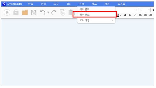2. 상단 메뉴 [서버] -> [라이선스]를 선택하세요